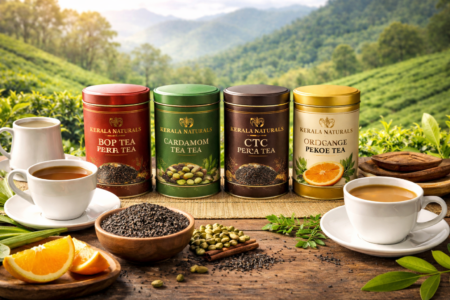 Kerala Naturals introduces a premium single estate tea collection that brings the authentic taste of Kerala’s high-range plantations directly to your cup. From the bold character of BOP and CTC to the aromatic charm of cardamom and the smooth elegance of orange pekoe, each variety delivers a unique experience. So,this is the perfect time to enjoy the freshness, aroma, and rich flavour of high-quality leaves from Kerala.